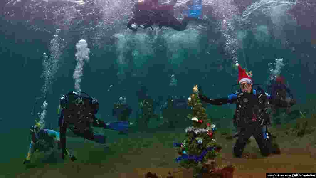 Qırım dalıcılarınıñ qış ananesi bar: üçünci yıldan berli Novıy Svet qasabasınıñ yanında türlü drayver klublarınıñ azaları bayram naratınen suv tübüne dala, anda, suv tübünde, alqa turıp oynaylar, yañı yıl yemeklerini aşaylar.