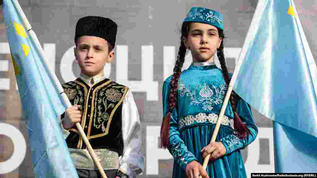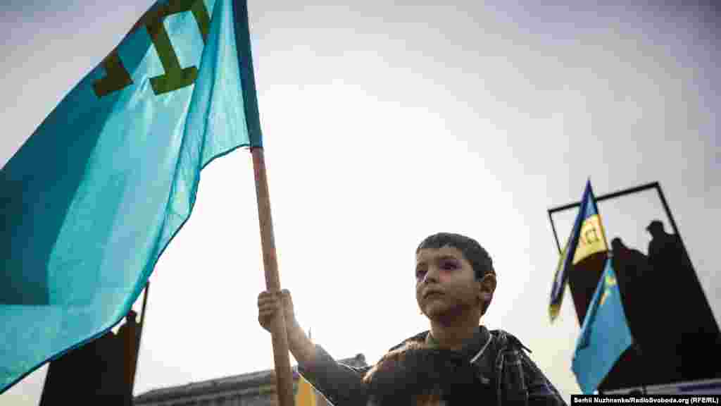 Kyivde faaller sürgünlikniñ 75 yıllığına bağışlap avtoyürüş keçirdi. Maşna kolonnası "Ekspotsentr Ukrainı" Milliy Kompleksiniñ yanında toplanıp, Mustaqillik Meydanını yol tuttı, anda ise aqşam matem mitingi keçirildi.